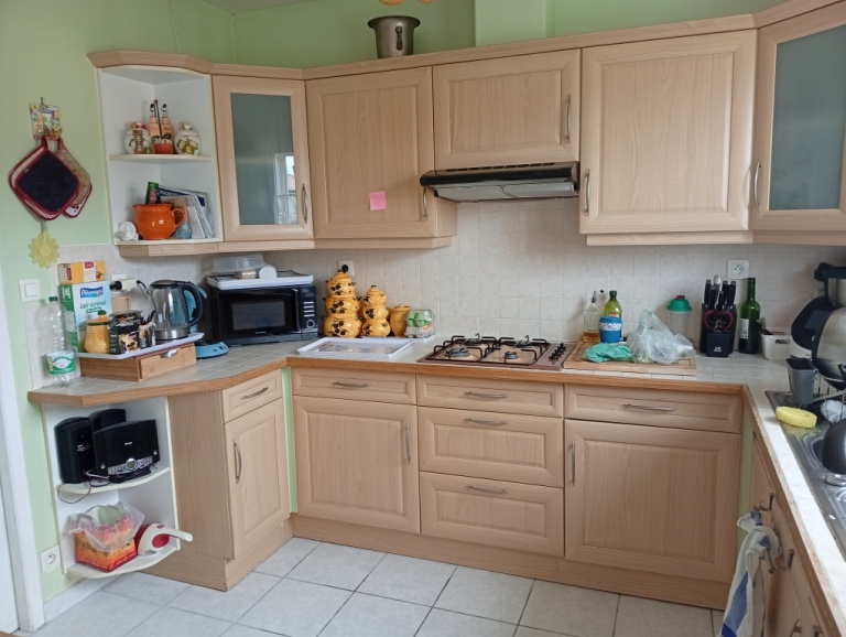 Elle comprend une belle pièce de vie avec son coin cuisine aménagée, un hall nuit, trois chambres (avec des placards), une salle de bain, un wc.